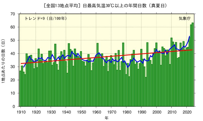 特に最近は猛暑日の日数が増えているのだ。 暑い日が続くと熱中症になる人が増えるので注意が必要なのだ。