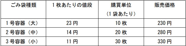 大、中、小の大きさの違う3種類のごみ袋があるのだ。値段は1枚当たりそれぞれ23円、14円、11円なのだ。